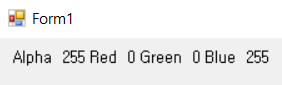 string str = "Alpha " + Color.Blue.A + " Red " + Color.Blue.R + " Green " + Color.Blue.G + " Blue " + Color.Blue.B;